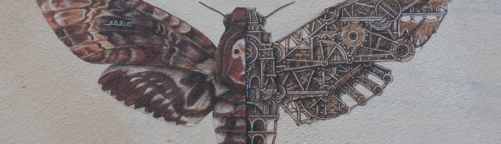 below: An intricate drawing of a moth and the possible mechanics of its wing, by ardif