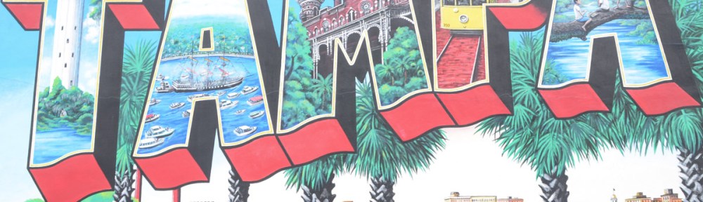 below: 2012, commissioned by Tampa Public Art Program, painted by Carl Cowden III. In the letters that spell “Tampa” you can see the Sulphur Springs water tower, the Gasparilla ship and accompanying flotilla, the old Tampa Bay Hotel now the University of Tampa, a streetcar in Ybor City, and a nature scene on the Hillsborough River.