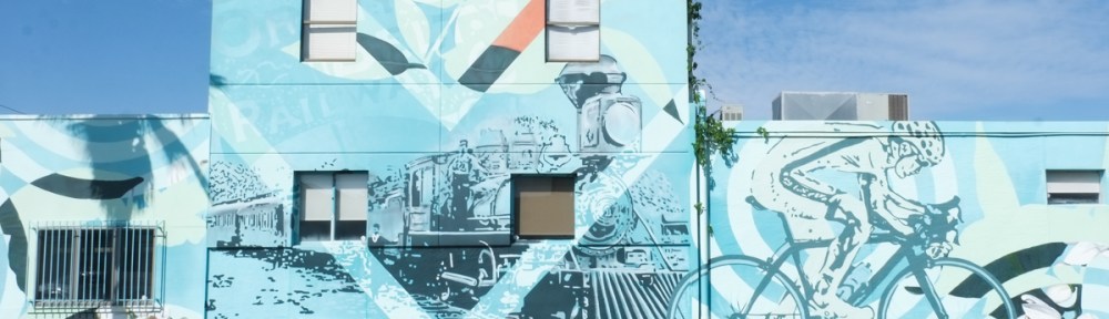 The previous blog post was about a large mural in Clearwater that was on the Pinellas (bike and walking) Trail as it passed the downtown area, “See yah later Alligator”. Slightly to the north of that alligator, but still on the trail, is this mural….