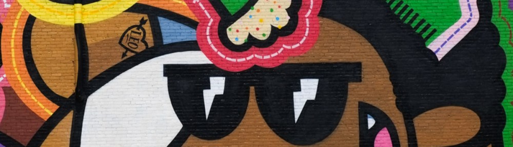 The brick and window facade of the old American Thread Company provides a backdrop for the playful and colourful mural by Golden305.