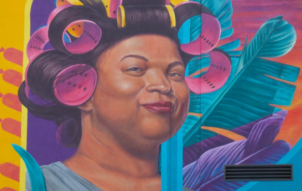“KLK” is an acronym for “Que lo que!,” which loosely translates to the English, in meaning and usage, as “What’s up?” The mural is a celebration of Dominican culture.