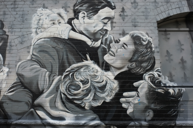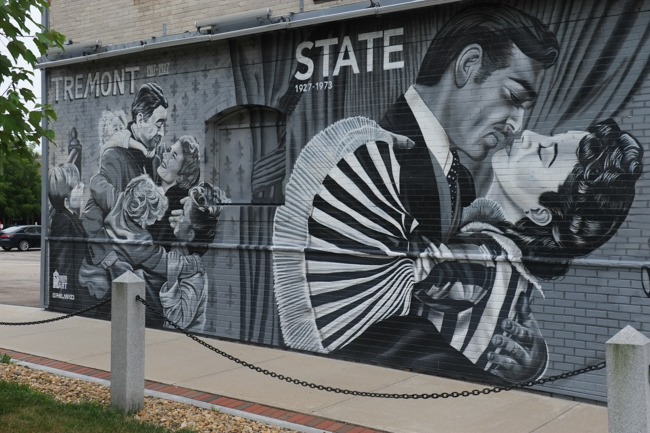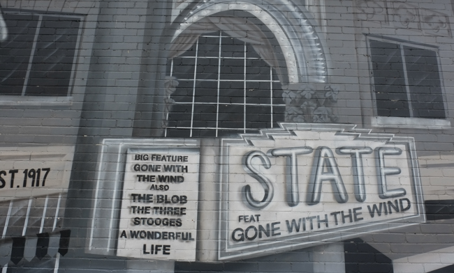 … is a mural on Main Street in Nashua that takes a look back at three of the highlights in the history of American movies – The Three Stooges, Cary Grant and Vivian Leigh in ‘Gone With the Wind’, as well as James Stewart and Donna Reed in ‘A Wonderful Life’. It was painted on the side of on the Chase Building on its 100th anniversary. Once upon a time this building was home to a movie theater with a few different names – the Tremont (1917-1927), State (1927-1973), and Star (1973-1980) Theaters.