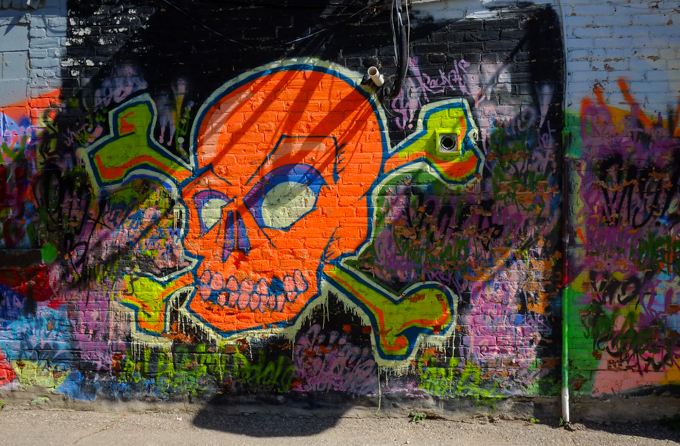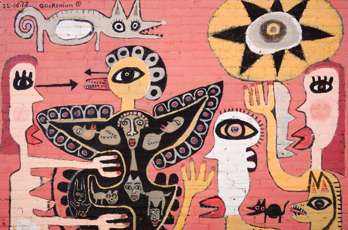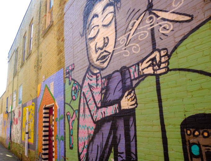 below: Back in 2013, the Bleeding Carrot Cafe decided that the alley adjacent to the cafe needed some art and thus the Bleeding Carrot Alley Project was born. That summer, the exterior walls of the cafe (in the alley) were painted with street art murals. Most of them still exist. Although the Bleeding Carrot doesn’t seem to be in business any more, it has left behind a colourful legacy. The first part of this blog post is dedicated to those murals.