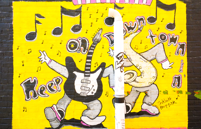 below: Keep on rockin’ downtown, bright yellow by Robert Menzies (also 2013).