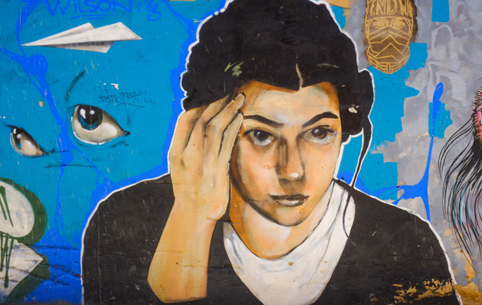 graffiti and street art, Mr. Dimples, a woman holding a bomb