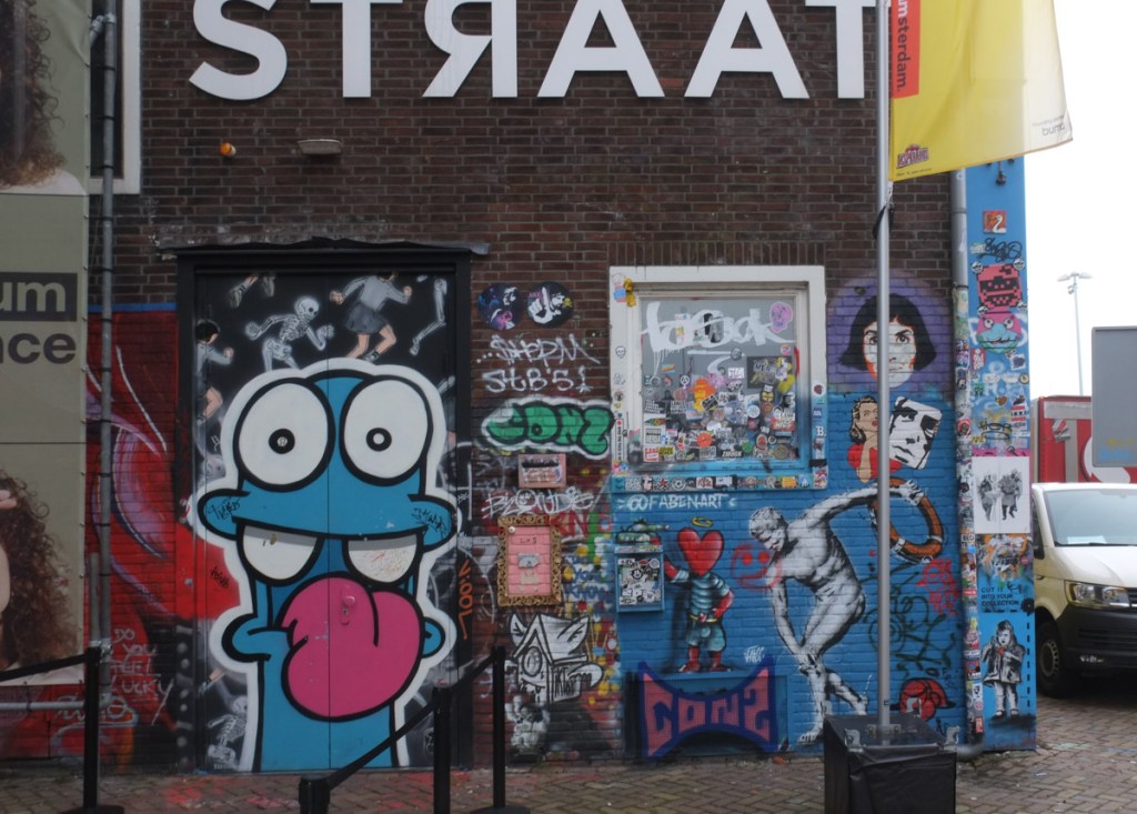 Amsterdam has a large museum/gallery dedicated to street art. It is located on the grounds of an old shipyard, a short ferry ride away from the central part of the city. Some of the murals are outside, along with a lot of graffiti that has been added over time. The works that I have included in this blogpost are what I saw around the outside of the entrance to STRAAT, the indoor gallery