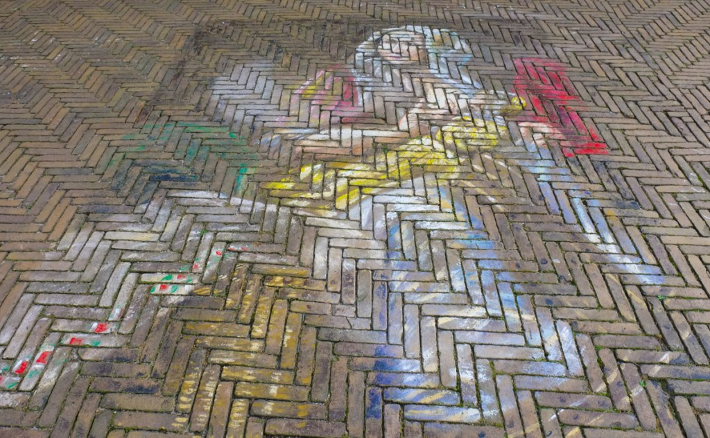 below: Literal street art – chalk (paint?) on the paving stones.