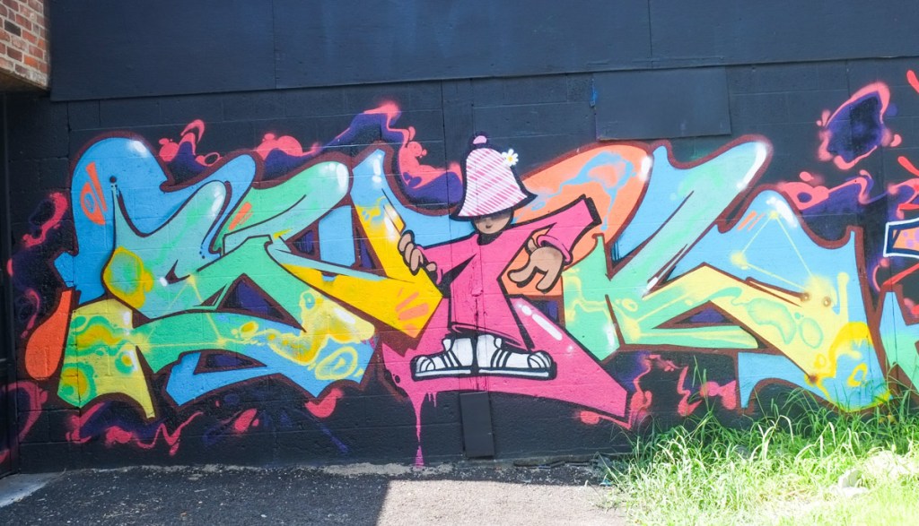 below: “Child Flower” painted on the former Boys Club building on Race Street, by Gleo