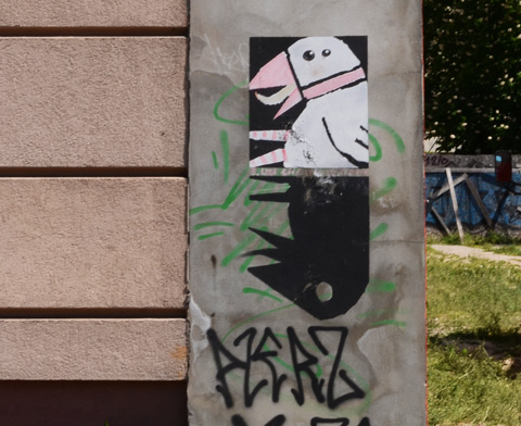 Lodz Poland is home to many large murals that have been funded and promoted by organizations such as Urban Forms Gallery (Fundacja Urban Forms). Although not as common as in some cities, there are smaller works to be found – paste ups, stickers, and stencils by a number of artists. These are ones that I saw the day that I was in Lodz back in May 2022.