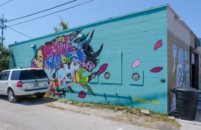 Fairgrounds describes itself as an immersive arts and technology experience. It is located near 28th Street S and the 275 freeway in St. Petersburg. You’ll find the Pinellas Trail nearby. The area around it is home to some interesting street art.