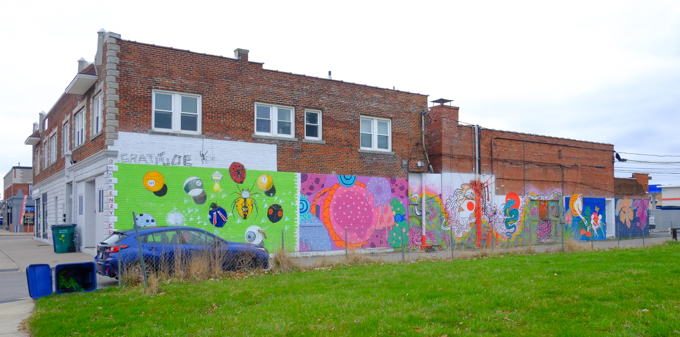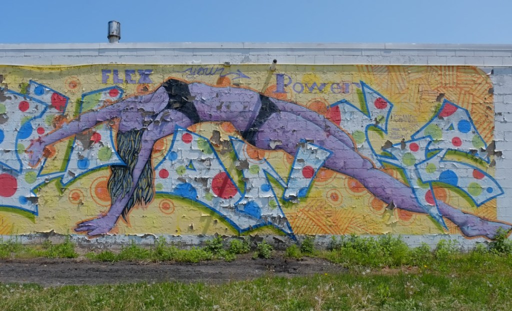 Most of these are old murals. In fact they were painted in 2013 as part of a Wall Therapy event. Just beyond the wall is a newer painting (that replaces one from 2013).