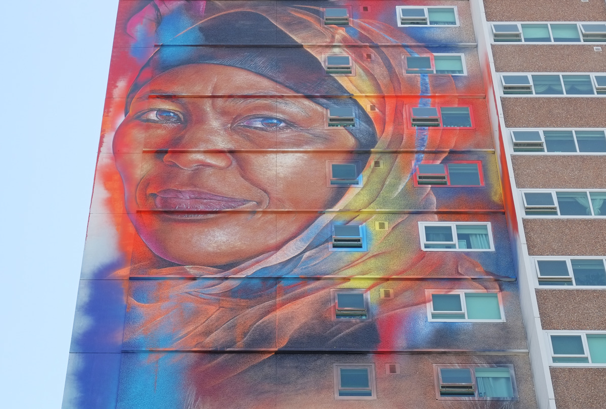 below: She’s slightly fuzzy in this photo I’m afraid, she also appears on a number of European walls. Street art by seiLeise (aka Tom Ossege)