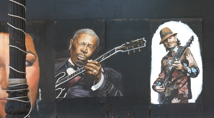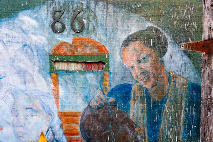 below: There was a flowing grid of different colours on the mural on the right but most of it has been covered with tags.
