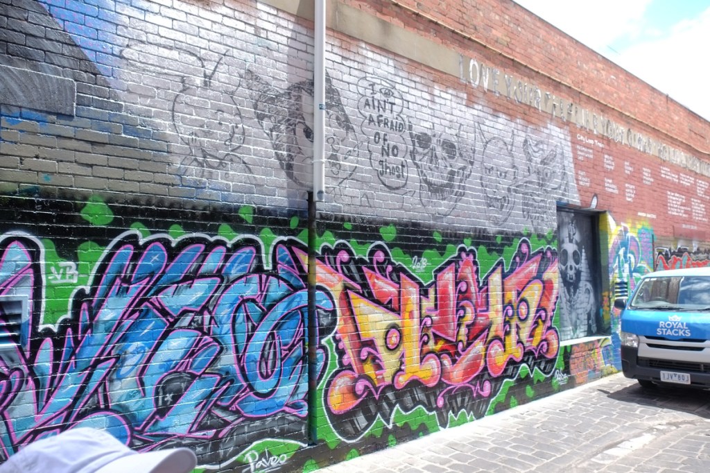 Artist Lane runs parallel to Chapel Street between Green and Union streets, just north of Windsor railway station. Most of the lane is covered with street art of some sort.