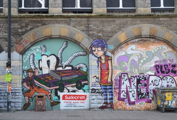 People in murals and other street art seen in Bristol earlier in 2017.