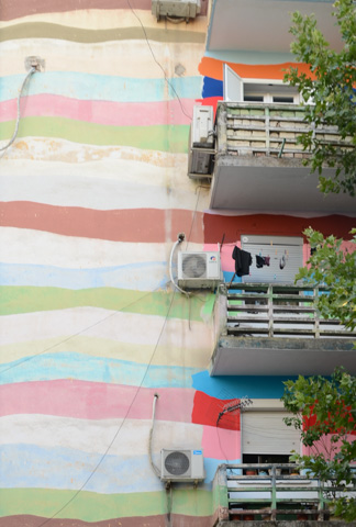 below: ‘Girl from Ipaneme’ by Kim MacConnel, 2010 (painted on the wall)