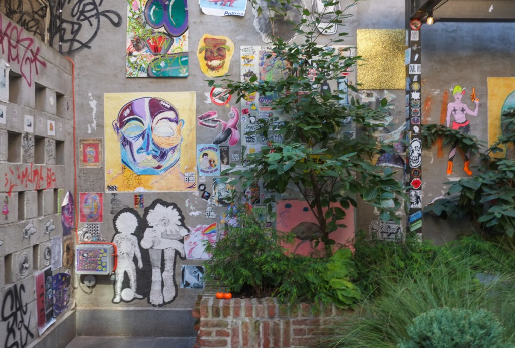 below: One of the original pieces of street art in Dusseldorf is this large yellow Monkey that appears to be painted by a group of smaller monkeys. It was painted in 1969 by the Majo Brothers. The title is, appropriately “Affe” which is German for monkey. You could probably call it Der Gelbe Affe, or the Yellow Monkey.