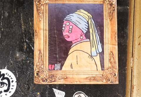 below: The mural contains portraits of characters from Delft’s past such as Hugo de Groot (1583-1645), Antoni van Leeuwenhoek (1632-1723), “The father of microbiology”) and Vermeer’s Milkmaid (from the famous painting).